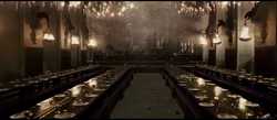 The Great Hall in the Hogwarts Castle was the main gathering area in the school, which was located off the Entrance Hall. It was a large hall where students and teachers dined and congregated.[1] Three meals a day were hosted in this hall.